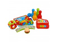 Inside, you’ll find 6 different toys designed to develop physical endurance, fine motor skills, logical thinking, and musical appreciation: