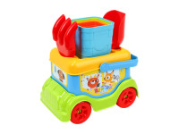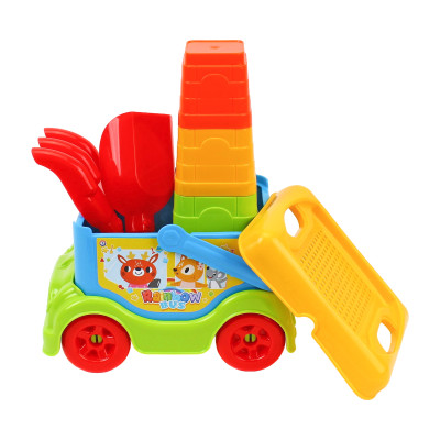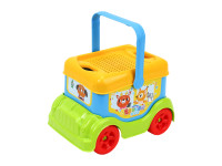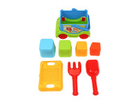 Discover our latest release (Art.3373)! It's not just a sand set; it's a mobile play center. The blue "Rainbow Bus" carries a whole world of fun: a sieve, a shovel, a rake, and colorful stacking molds. Perfect for little explorers who love to build and drive!