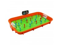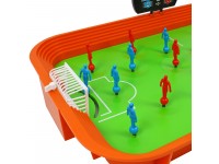 The kit includes everything you need for exciting matches: a tabletop field, two teams, a substitute player, balls, and a scoreboard.