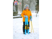 We recommend to start skiing on windless days on a flat surface. Teach the child to correctly fix the ski fastener on the shoes. As soon as you put the baby on the skis, ask him to try to walk and slide on them, holding his hand or shoulder. Sticks are designed for balance and push off.