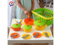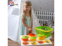A kitchen set in a spacious basket is a real find for a small housewife. Bright colors and variety of tableware will certainly attract the attention of children and parents.