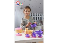 The set includes everything for preparing delicious dishes and meeting guests. Big pans with lids, a stewpot with lid and a frying pan for different culinary masterpieces. A skimmer, a scoop and a spatula will make the process more realistic. You also have a coffee-pot, 4 cups with spoons on saucers to please guests with fragrant coffee.