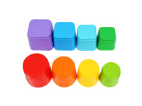 Each pyramid consists of 4 elements of different sizes and colors. To build the tower, the child must correctly match the elements not only by size but also by the shape of the base - whether round or square. This toy can be used in sand play, making it indispensable for building forts and castles.