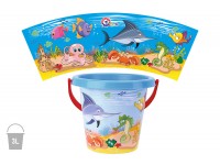 The picture on the bucket is made using the IML technology. This unique technology ensures the durability of the image against sun fading and rubbing, so it cannot be peeled off.