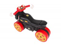 Thanks to a special steering wheel that can rotate 360 degrees, the mini-bike is very maneuvering, and the wide and reliable wheels make the toy transport stable. The toy improves coordination of movements.