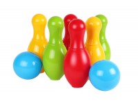 With the TechnoK bowling set, playing becomes interesting and fun. The set includes: 6 multi-colored pins and 2 bright balls, which even toddlers will find convenient to knock down. All elements of the set are made of quality, durable plastic, odorless.
