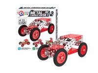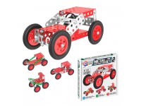 The "TechnoK Metal Construction Toy," art.6405, is classified as the "Beginner+" level. It consists of 125 pieces, from which you can assemble 4 models of medium complexity: a car, a carriage, car 2, and car 3. In this set, we have added new elements, namely rubber wheels. We recommend using this construction set both for home use and for group activities in kindergartens (from 5 years old) and in lower grades.
