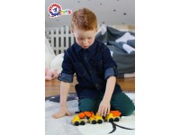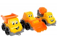 The toy “Mini Transport TechnoK” is a set of persistent builders for funny games. It includes a small dump truck, a tractor and a mixer truck. It`s interesting both at home and in the sandbox. The child can build roads, bridges and flats or carry goods, mix concrete and dig trenches. Such a role -playing games are very useful for children, because they develop imagination, thinking and fantasy. These toys are special for their merry eyes and smiles, made with pad printing. With their emotions the mini cars become fairy tale heroes and seem to come to life. This toy set with building transport has all chances to become your child`s best friend. The cars are packed in a bright gift box.