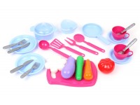 The set, together with the toy kitchen, contains all the necessary utensils for preparing delicious meals. And after a delicious dinner, you can wash the dishes. For this, there is a sink with a tap and a sponge in the shape of a flower.