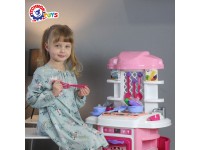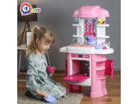 Such story role-playing games develop children's imagination and thinking, help to form cooking and cleaning skills, learn the rules of behavior with appliances in the kitchen. It is convenient for two or three children to play near the wide tabletop. The original legs of the kitchen with two cabinets make it resistant to overturning and very functional. The toy is made of high-quality, durable, odorless plastic.