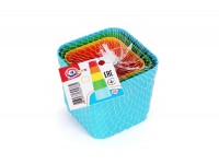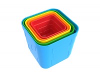 Thanks to the different sizes of the elements, you can assemble a pyramid from a larger element to a smaller one, or vice versa, put them all into the largest one. In the sandbox, it is convenient to use the elements of the pyramids as molds for sand and to form steps in different sequences.