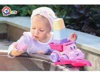 The sand set is a universal and interesting toy, you can play with the dump truck at home, or carry sand, build the pyramid or form “pasochki”. Such games help kids to learn forms, colors, to compare sizes and to do the first steps in counting.