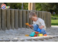 Toy “Sand set TechnoK” is a real find for enthusiastic games at home, in the sandbox or at the seaside. The set includes a dump truck on reliable wheels with a folding dump body, shovels, rakes and 4 sand molds, that form a pyramid.
