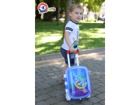 This suitcase is interesting, functional, and very much like a real "grown-up" one. The bright color, transparent cover, and cute sticker will surely attract children's attention to the toy. The image on the cover is applied using the IML technology (In-Mold Labeling), ensuring durability and vividness. The suitcase is comfortable for children of different ages and heights due to the adjustable handle. The open cover can be fixed in several positions, allowing the child to easily pack and unpack items from the suitcase. Reliable clasps enable closing the lid and keeping the toys inside the suitcase. Additionally, the large, sturdy wheels help children easily transport the suitcase.