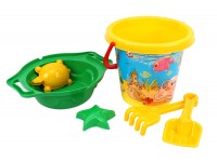 With the "Sand Set TechnoK," your child will have the opportunity to build incredible forts, beautiful sand castles, and create unique figures. The set includes a bucket for convenient sand transportation, a sieve for removing excess debris, a shovel and rake for the creative process, and two molds for crafting various sand sculptures.