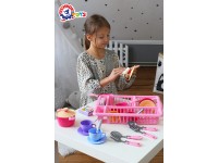 A great present for your little housewife is the toy kitchen set in a comfortable plate dryer. Bright colors will successfully catch children's attention and diversity of toys will cause real delight.