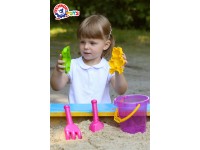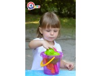 "Sand Set TechnoK" in a pink transparent bucket will bring joy and happiness to children during exciting games. They will surely bring it to walks, sandboxes or beach. The original pink transparent bucket with glitters will cause real enthusiasm among kids.