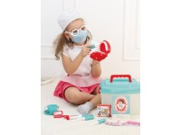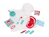 The set includes all the professional tools to treat the teeth: a drill, an oral mirror, a dental probe, a syringe and tweezers, glasses, a badge, a box with pills, the scheme of “numbering of teeth”, a cup with a spoon and a plate. And the most interesting piece of the set is the jaw model. Now all the teeth can be properly examined and treated.