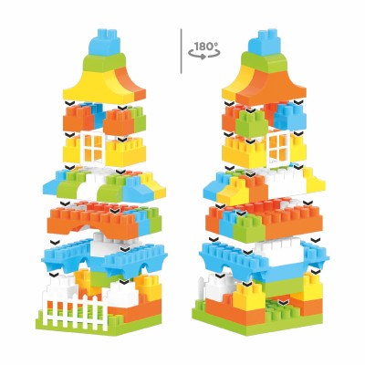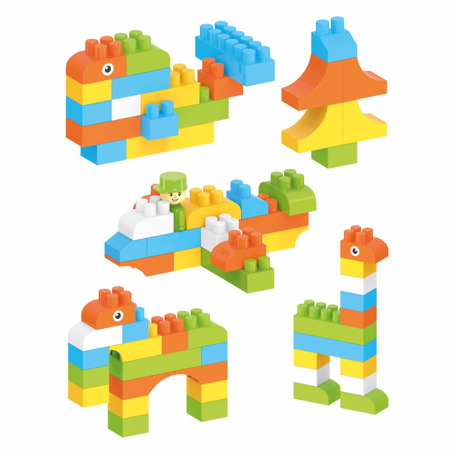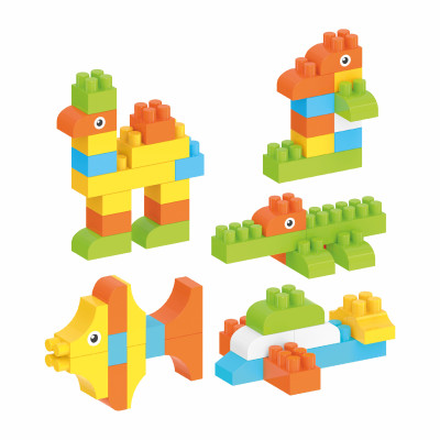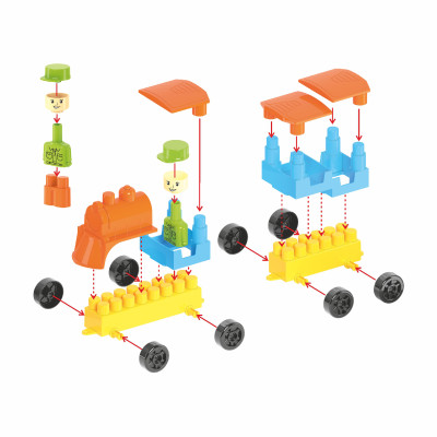 The construction set with different building blocks develops fine motor skills and helps to train coordination of movements. Also, parents, playing with children, teach them new words: names of colors, shapes, animals, buildings and transport. Assembling a whole structure, children develop imagination and spatial thinking. Exciting games with the construction set educate attention, patience and perseverance. Playing together, children develop social and communication skills. They have to cooperate, discuss further steps and agree to solve the tasks.