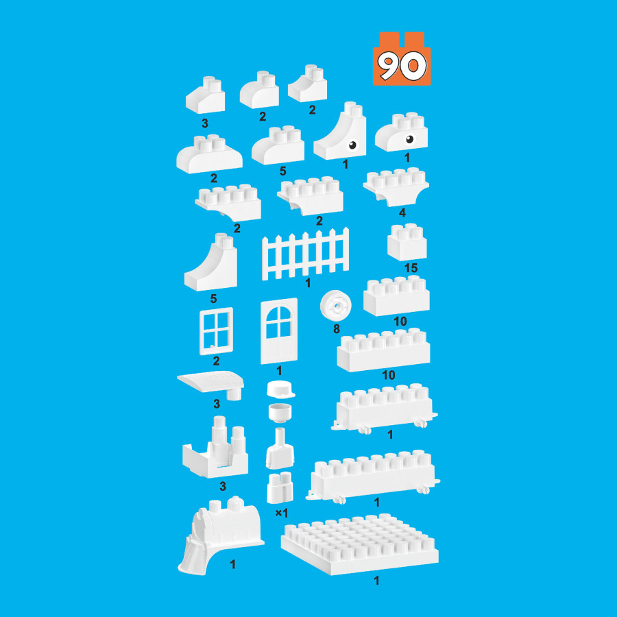 The set includes building blocks with rounded corners and arches for ships or funny animals, fences, windows and doors for fairy-tale castles. The new large plate in the construction set of this series is an indispensable element for houses and other architectural forms. It makes the doll's house stronger, easier to carry and more comfortable to play with. The platform with wheels is a real find. You can build a car, a train or a plane and it will come in handy when designing robots.