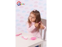 The set includes everything needed for your daily beauty care: a comb, a brush and a bow for a fashionable hairstyle. If you want a curly hairstyle then the curling iron from the set is perfect. A mirror with a handle, tweezers and a powder box will help with the ideal make-up. Now the little fashionable girl will have everything like her mummy.