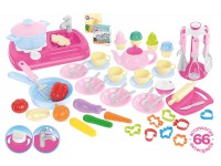 Here you are a mega set of dishes and kitchen utensils for young culinary masters. Delicate colors and an incredibly large and interesting complete set will surely catch the child`s attention. Dishes and kitchen utensils are the first household items that the baby gets acquainted with, because he meets them every day. That is why toy kitchens are so interesting for all children.