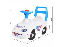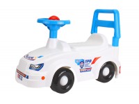 The snow-white car with bright stickers is suitable for agile little “policemen”.