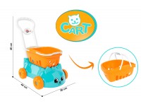 A comfortable basket with handles is securely attached to the cart. It`s interesting that you can remove the basket from the cart and play separately with each other. In the basket it is convenient to carry fruits, vegetables, dishes, sand sets and other toys. Its size permits to carry it outside, in the sand box or in the kindergarten.