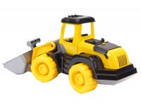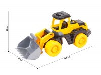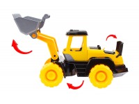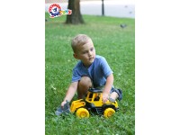 The feature of this new toy is the movable (hinged) connection of the cab with the tractor bucket.This allows the tractor to work not only in quarries, but also on small construction sites. Big stable wheels permit the toy to overcome different obstacles. In the comfortable open cabin you can put your favorite toy. You can also open the engine compartment cover and the child can control the motor and carry out maintenance or repair it in time.
