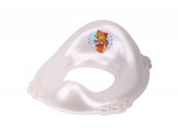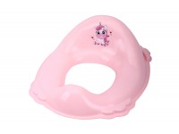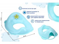 The child`s potty seat is reliably fixed to the “adult” toilet seat. Thanks to the rubberized inserts on the legs, it does not slip off the rim. Its rounded anatomical shapes provide comfort for babies. The thickened rounded rim along the contour means the absence of sharp edges and so the baby`s safety. You can carry and store the potty seat in the bath thanks to its big handle on the back.