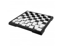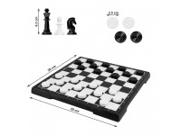 Set includes: plastic box with metal board, chess – 32 pieces, checkers – 24 pieces.