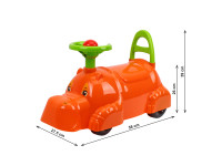Toy "Ride-on TechnoK" - for clever little "drivers". The car is reliable, durable, practical and comfortable. The ergonomic design is suitable for babies above 1. The backrest provides extra support for children while riding. There is asignal button on thesteering wheel to alert pedestriansand other drivers. So the driving gains maximum realism. The toy "Ride-onTechnoK" will become a reliable friend for your kid and will bring muchpleasure during games at home and outside.