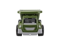Its spacious tilting body makes it easy to load and unload sand, gravel, snow, or other building materials. The sturdy large wheels with tread provide the truck with high cross-country capability on various roads. Thus, the dump truck rides well on grass, sand, and dirt roads.