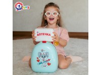 Medical kit, that hurries to help animals, dolls and other toys. There are all necessary tools for providing first aid in the backpack.