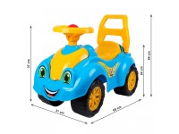 The “Ride-on car TechnoK” is a stylish design combined with comfort and functionality. Its bright colors and original stickers will definitely attract the baby's attention. It`s like a real car: it is possible to transport shopping bags in the trunk or have a look into the engine compartment raising the hood. A comfortable back supports the child while driving. The exhaust pipe imitation provides stability of the car. On its big reliable wheels the car has high passability on various road surfaces. T