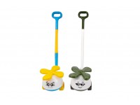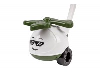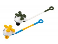 The pusher toy is equipped with a long handle (if necessary, it can be unfolded and conveniently transported or stored), a stable design that provides convenient control and a comfortable grip for small hands. By spinning the wheels of the wheelchair, the child activates a special function - the helicopter itself starts flying!