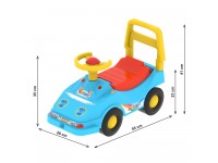 Toy "Ride-on TechnoK" - for clever little "drivers". It surelywill attract parents` attentionand also kidswill love it. T he car is reliable, durable, practical and comfortable. The ergonomic design is suitable for babies above 1. The backrest provides extra support for children while riding. There is asignal button on thesteering wheel to alert pedestriansand other drivers. So the driving gains maximum realism. The toy "Ride-onTechnoK" will become a reliable friend for your kid and will bring muchpleasure during games at home and outside.