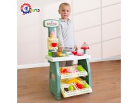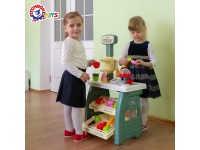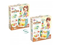 Additionally, the set includes everything needed to prepare coffee and serve desserts: stylish tableware, cake stands, and a large countertop with a coffee maker and menu sign that add realism to the game. Sturdy and spacious shelves hold beautiful boxes of fruits, sweets, and fragrant pastries, perfectly complementing any hot beverage. This set encourages a child's imagination, allowing them to host cozy gatherings with friends!