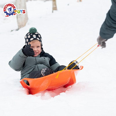 Toy "Sledge TechnoK" – perfect for thrilling winter adventures! These vibrant sledges with an exclusive IML design are crafted for true thrill-seekers. Their sleek aerodynamic shape ensures a fast glide, while convenient side handles help maintain balance and steer with ease. The fun, colorful design will delight kids and remain vivid for years, as it won't fade or peel. Thanks to a sturdy rope, the sledges are easy to pull back up the hill, ready for new challenges!