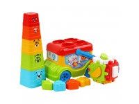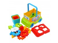 Це багатофункціональний автобус-сортер, у ньому можна сортувати фігурки тваринок, гратися кубиком та геометричними формочками, будувати пірамідку, возити улюблені іграшки. А ще його дуже легко переносити, оскільки є зручна ручка, яка допоможе це зробити. Іграшку зручно брати із собою на прогулянку, на природу, в садок, чи просто гратися вдома. А коробка яскрава та красива, що сподобається і дітям, і дорослим та надасть іграшці "подарункового" вигляду.