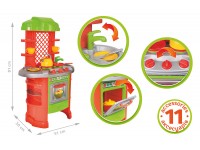 Оригінальні ніжки кухні з двома шафками роблять іграшку стійкою до перекидань та дуже функціональною. Висота кухні у зібраному вигляді 81 см, а ширина стільниці 51 см. Біля широкої стільниці зручно гратися відразу двом чи трьом діткам.