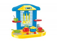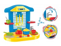 Іграшкова "Кухня ТехноК" дозволить діткам відчути себе справжніми шефами. На кухні є дві конфорки з ручками, що повертаються та імітують включення газу, гачки та полички для посуду. У наборі також є різноманітний посуд для приготування корисних страв. Після смачної вечері треба помити посуд – для цього є мийка з краном.