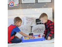 У комплекті є спеціальна настільна дошка зі зменшеним хокейним майданчиком, фігурки гравців, палиці, шайби та все необхідне для цікавої гри.