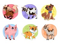 З кубиків можна зібрати 6 малюнків: собачка, котик, кізочка, свинка, корівка, коник.