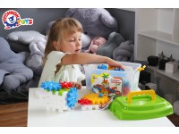 Зустрічайте конструктор «ТехноК», яким гратися так само цікаво як і складати його! Іграшка налічує 103 деталі: пластмасові шестерні, пластини-пазли, фігурки звірів і дерев, багато інших оригінальних елементів. Правильно зібраний конструктор перетворюється на захопливу конструкцію: різнобарвні шестерні, що рухаються, іграшкові мешканці джунглів і тропічні рослини з пластмаси. З цією іграшкою діти уявлятимуть себе досвідченими мандрівниками, які потрапляють в екзотичні місця та пригоди.