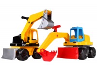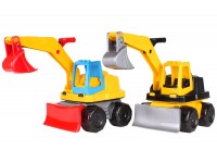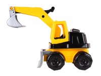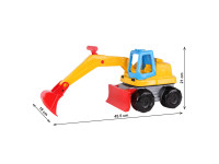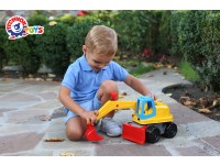 Кабіна іграшкового трактора обертається на 180 градусів, а ківш регулюється за допомогою спеціального важеля. Колеса трактора великі, міцні та надійні.