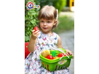 Іграшкові овочі й фрукти у зручному кошику — це чудовий подарунок, цікаве навчальне приладдя та, водночас, весела іграшка. Ця іграшка буде корисною вдома, в дитсадку чи школі, на прогулянці у парку. З нею можна вивчати арифметику, форми, кольори, та, навіть, ботаніку.