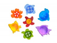 Нова «Пірамідка ТехноК» - справжня знахідка для веселих та повчальних ігор. Іграшка складається з семи елементів різного кольору та розміру. При цьому кожен елемент – ще й цікавий морський житель: дельфін, морський котик, краб, черепашка, морська зірка та рибки.