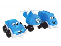 У наборі зібрані автомобіль, мікроавтобус та гвинтокрил. Така команда машинок завжди прийде на допомогу іграшковим друзям. Відомо, що сюжетно-рольові ігри розвивають у малюків фантазію, уяву та мислення. Маленькі машинки зручно брати з собою на прогулянку або гратися вдома.