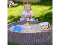 Кольорові рішення на різні смаки: прохолодний блакитний або блискучий малиновий. Пасочки для піску - у приємних пастельних тонах: ніжний рожевий, соковитий салатовий, прохолодні блакитний та лазуровий. Особливої уваги заслуговує зображення на відерках, що нанесено за технологією IML (безпосередня інжекція малюнка на іграшку). Такий малюнок не втрачає яскравості та, на відміну від наклейки, є довговічним.